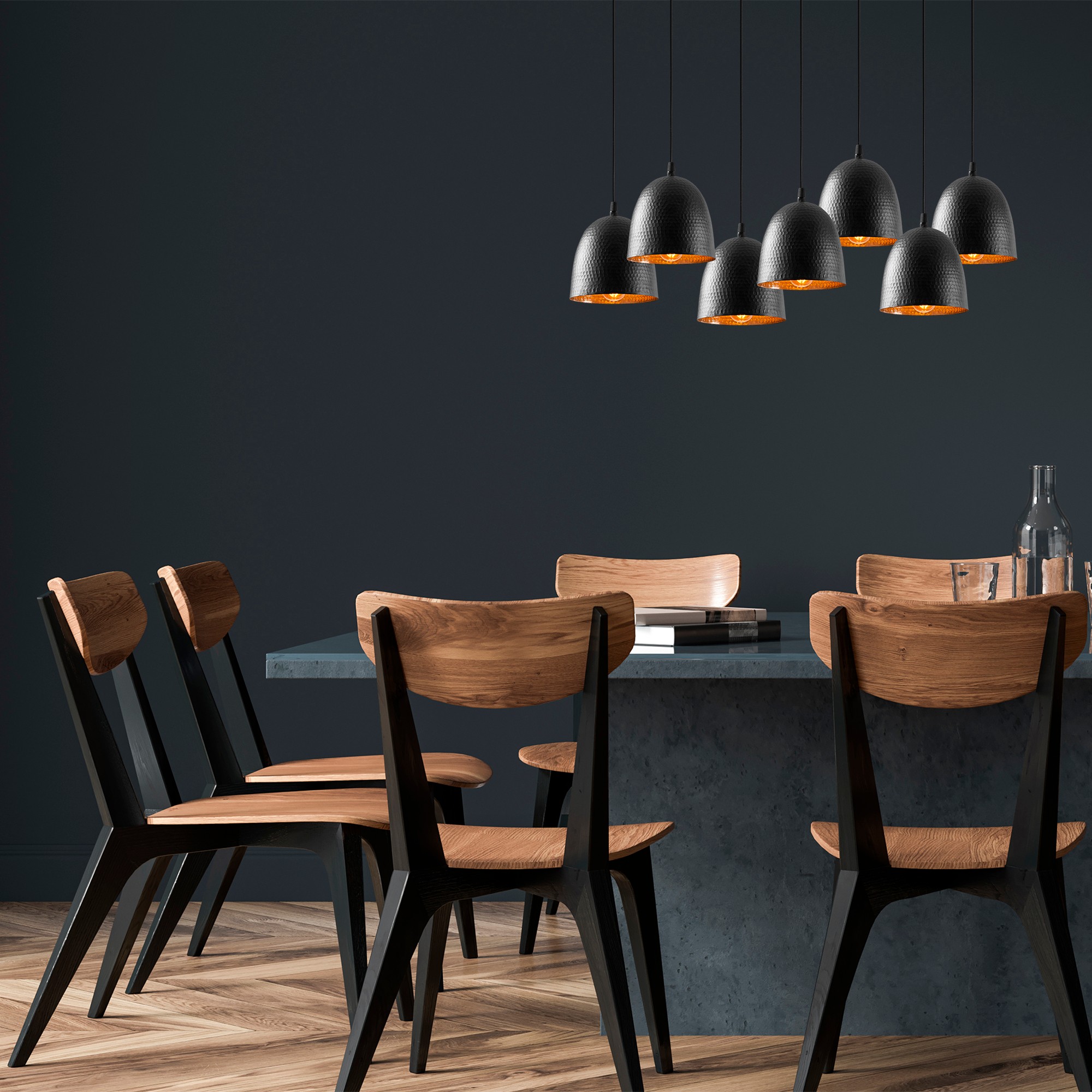 Luster TATTOO je celý v čiernej farbe a so svojimi malými tepanými tienidlami, ktorých výšku si môžete nastaviť sami, môže ponúknuť dlhý rad svetla.