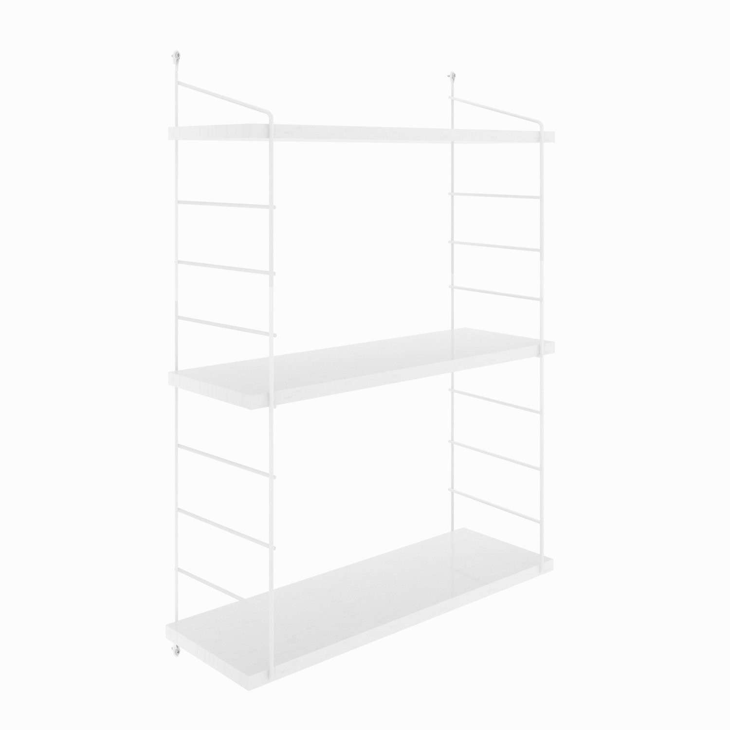 Jednoduchá nástenná polica s kovovou konštrukciou a tromi policami.