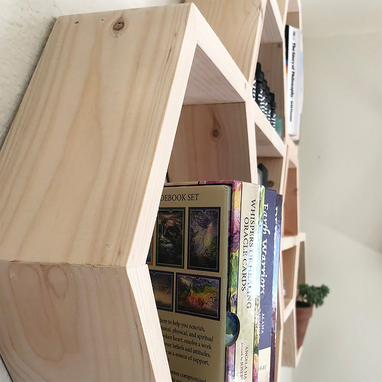 Polica BEE je ručne z masívneho smrekového dreva, a imituje včelieho plástu.
