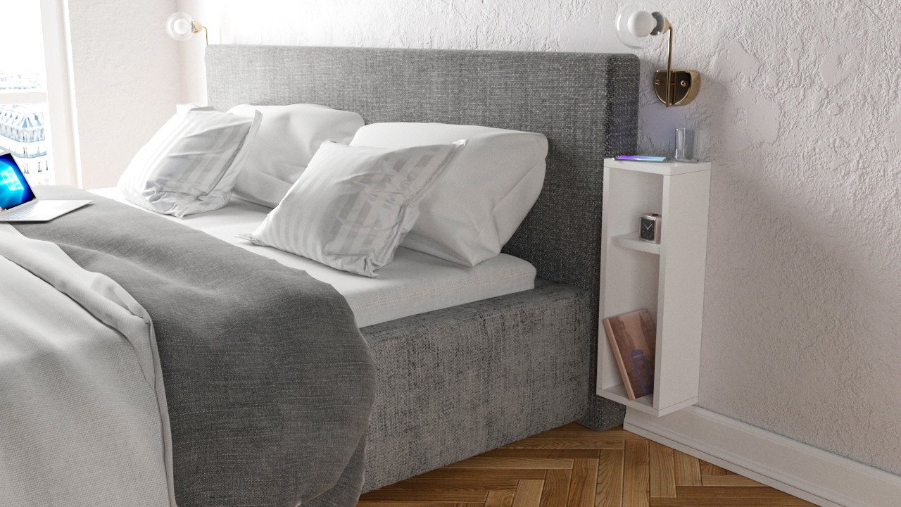 Jednoduchý závesný nočný stolík TURRA v bielej farbe do malých spální.