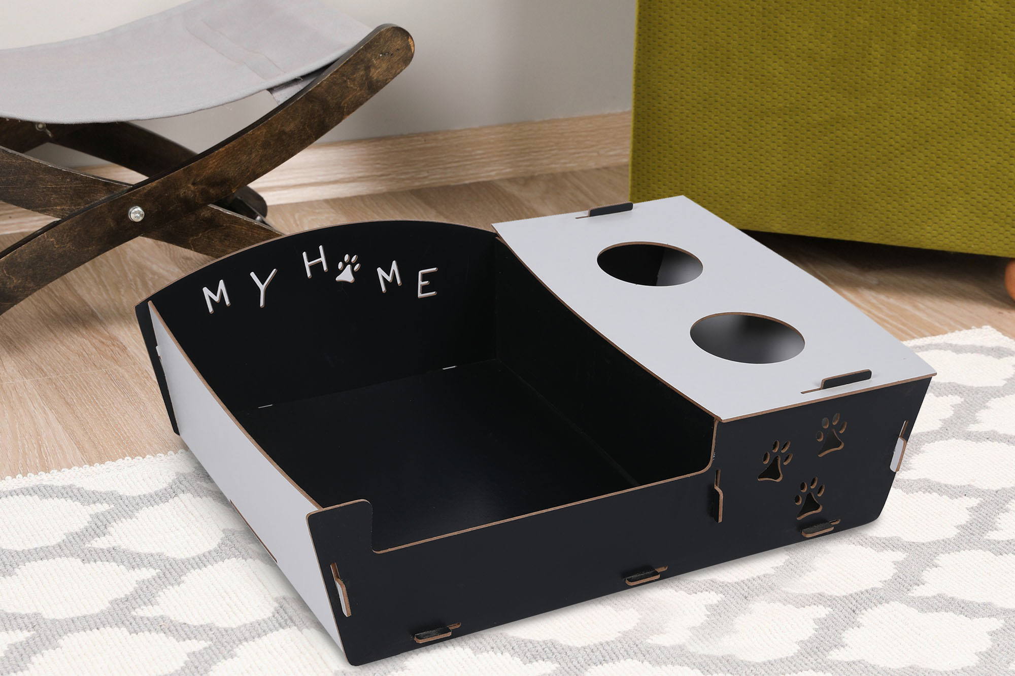 Skladací pelech pre mačky, vyrobený z MDF dosiek. Ideálne na cestovanie.