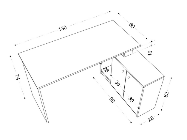 Tento rohový stôl BASAK si zamilujete pre jeho veľkú pracovnú dosku a úložnú skrinku.