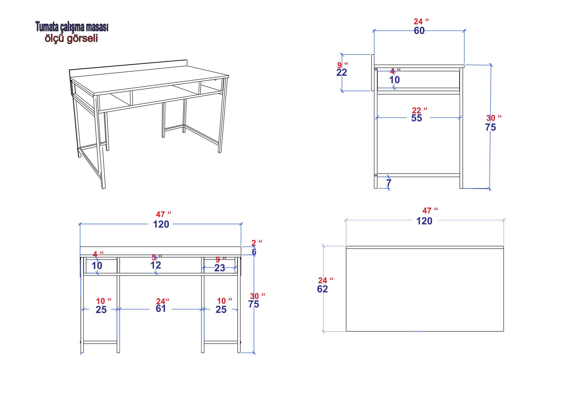 Elegantný a veľmi jednoduchý písací stôl TUMATA v zlatej farbe s kovovou konštrukciou a praktickou policou s tromi časťami pod hlavnou doskou.