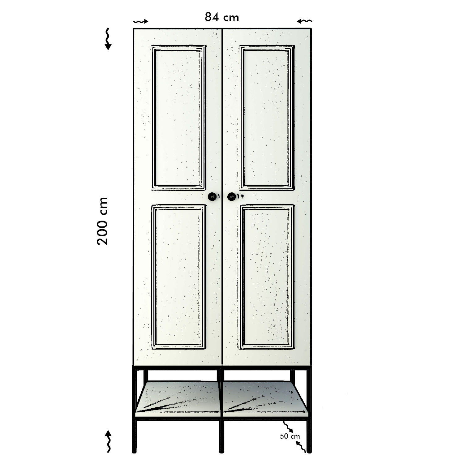 MARTIN je šatníková skriňa s kovovou konštrukciou, dvierka aj korpus sú biele.