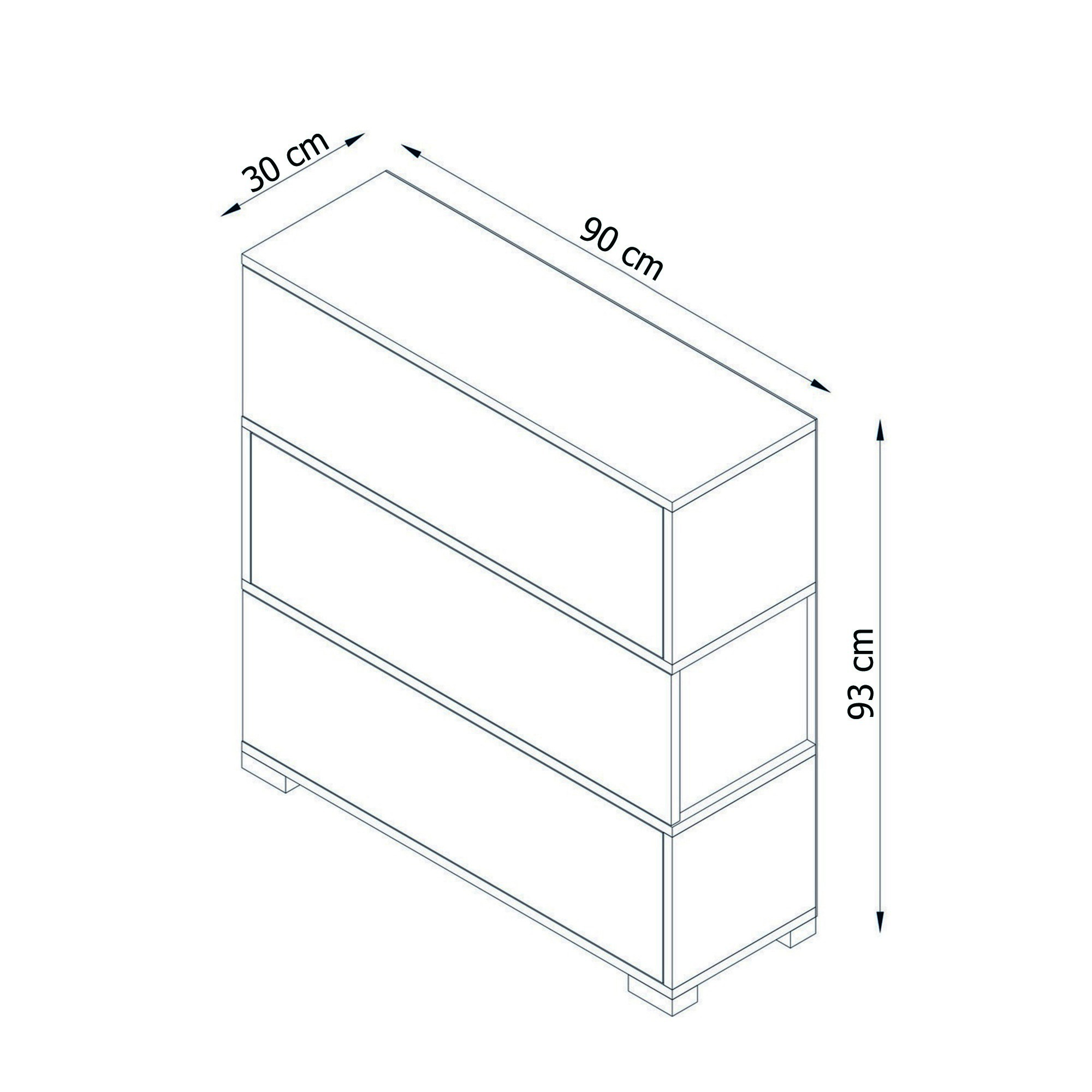 Regál na topánky ponúka tri úložné priestory s výklopnými dvierkami, ktoré stoja na nožičkách (plast).