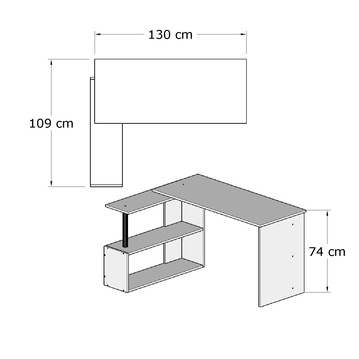 Stôl GELINCIK má veľkú pracovnú plochu a bočnú stranu tvoria police.