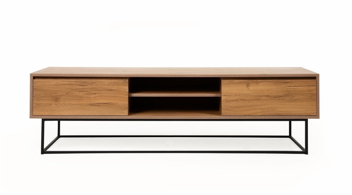 Na 180 cm široký TV stolík sa zmestí naozaj veľká TV obrazovka. Dve veľké zásuvky na uloženie všetkých potrebných vecí a centrálna polica na elektroniku.
