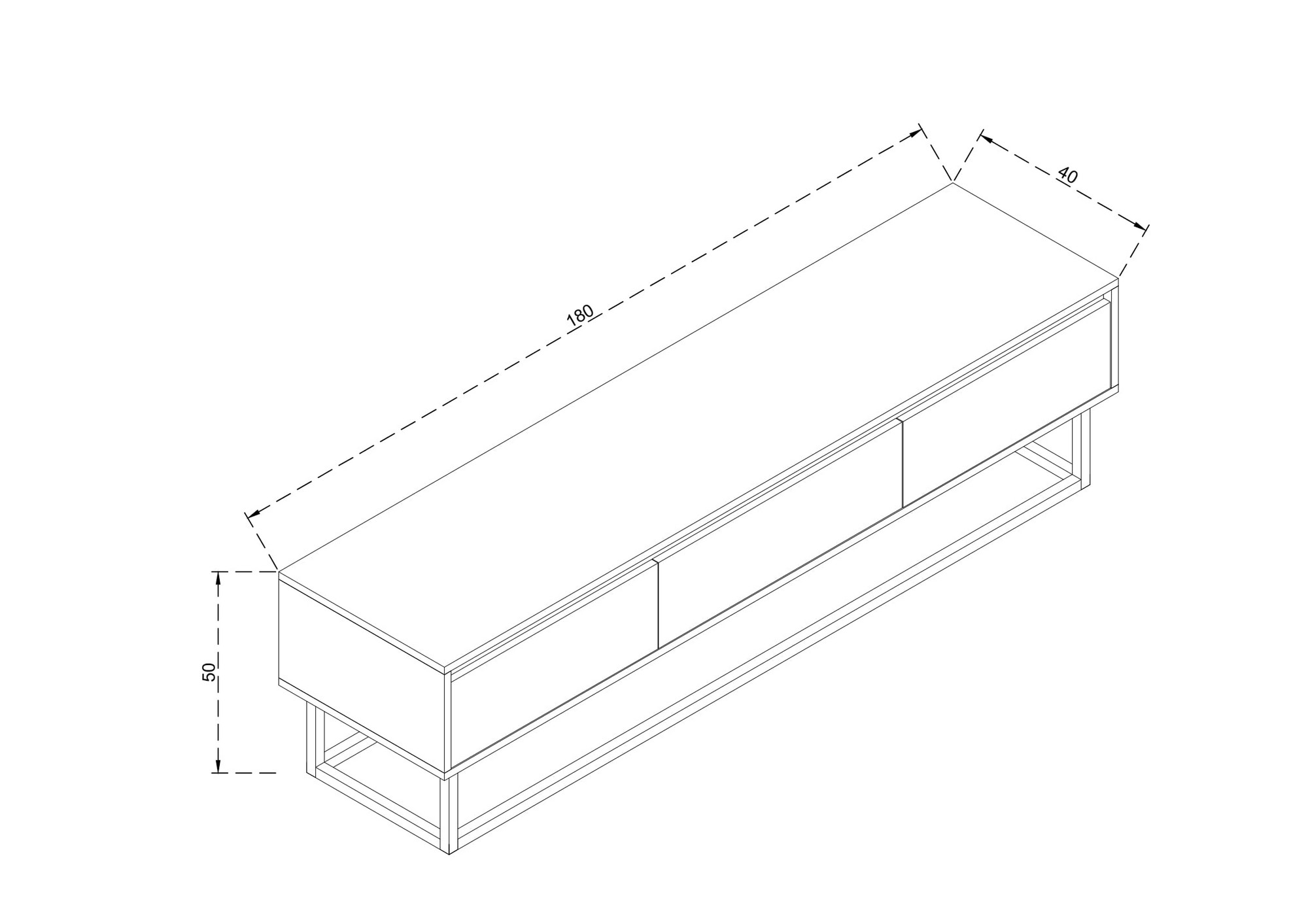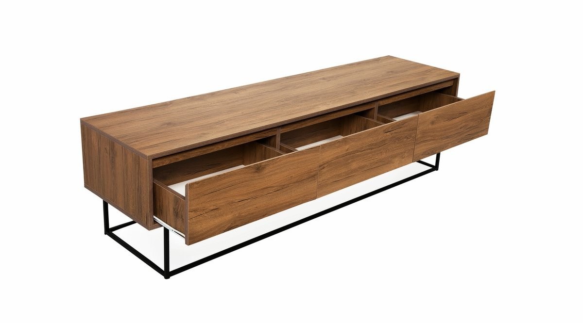 Široký TV stolík, vhodný aj pre veľký televízor. Tri veľké zásuvky na uloženie všetkých potrebných vecí.