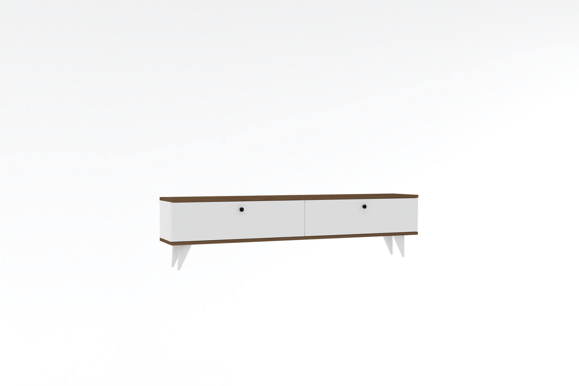 Biely televízny stolík PARIS lemovaný zhora aj zospodu doskou v dekore orech bude lahodiť oku tým, ktorí majú na nábytku radi elegantné a jemné detaily.