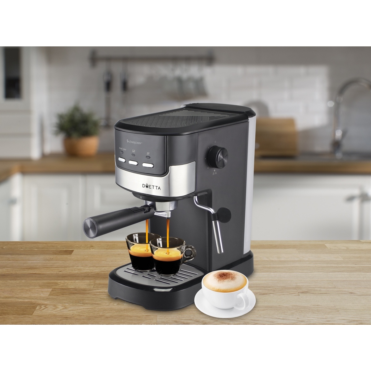 Objavte dokonalú flexibilitu s espresso kávovarom Beper Duetta – ideálnym spojením inovácie a jednoduchosti pre vašu každodennú kávovú rutinu. Tento elegantný kávovar ponúka možnosť prípravy kávy ako z mletej kávy, tak zo štandardných ESE podov, čím uspokojí všetky vaše chuťové preferencie. Vďaka dvom sitkám z nehrdz. ocele pre jednu až dve porcie kávy zvládnete ľahko pripraviť až dve šálky kávy súčasne – perfektné riešenie pre hektické rána alebo keď máte hostí.Silné 15-barové tlakové čerpadlo zaistí optimálnu extrakciu kávy, ktorá uvoľní plnú chuť a arómu každého zrna. Hliníkový bojler sa rýchlo zahrieva a rovnomerne distribuuje teplo, aby ste si mohli vychutnať perfektné espresso v priebehu niekoľkých okamihov.Pre milovníkov mliečnych špecialít prichádza Duetta s vysokotlakovou napeňovacou funkciou s nastaviteľnou intenzitou pary. Vytvorte si hustú, krémovú penu pre cappuccino alebo macchiato a doprajte si kávu ako z vašej obľúbenej kaviarne – presne podľa svojich predstáv.Praktická 1,2-litrová nádržka na vodu je odnímateľná a priehľadná, čo uľahčuje doplňovanie a kontrolu hladiny. Ohrievacia plocha na šálky udržuje vaše nápoje v optimálnej teplote, zatiaľ čo odkvapkávacia miska s mriežkou zaisťuje rýchlu a jednoduchú údržbu.Bezpečnosť je zaistená vďaka ochrane proti prehriatiu a pretlaku, takže si môžete svoju kávu vychutnať s kľudom. Výkon 1100 W a praktické príslušenstvo, vrátane odmerky na kávu s vtláčadlom, robia z tohto kávovaru ideálneho pomocníka pre domáce použitie. Pripravte si každú šálku s láskou a jednoduchosťou – s kávovarom Beper.