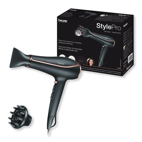 Beurer HC 80 sušič vlasov je špičkovým profesionálnym nástrojom na účinné a šetrné sušenie vlasov s výkonným AC motorom pre maximálny výkon a dlhú životnosť. S funkciou Triple Ionic prináša trojstupňovú ionizačnú technológiu, ktorá individuálne tvaruje a leskne vlasy.Vďaka profesionálnemu AC motoru s výkonom 2200 wattov tento sušič ponúka nekompromisný výkon pre rýchle a efektívne sušenie. Trojitá funkcia Ion umožňuje precízne nastavenie pre každý typ vlasov, pričom ionizovaný vzduch zaisťuje, že vlasy zostanú hebké a lesklé.S funkciou ochrany vlasov a zachovania žiarivosti farby vám Beurer HC 80 poskytuje profesionálne výsledky každý deň. Trojstupňová teplotná regulácia a dve úrovne ventilátora umožňujú prispôsobenie sušenia vašim potrebám.Fén na vlasy je vybavený uzamykateľnou studenou vlnou, ktorá fixuje styling a dodáva vlasom dlhotrvajúci tvar. Automatická ochrana proti prehriatiu poskytuje bezpečnosť a ochranu zariadení aj vlasov. Pohodlné ovládanie a nastavenie sú podporené uzamykateľnou studenou vlnou, objemovým difuzérom pre plnšie vlasy a úzkou profesionálnou tryskou na presné smerovanie vzduchu.S odnímateľným bezpečnostným filtrom pre ľahké čistenie a praktickým závesným pútkom pre ľahké skladovanie je Beurer HC 80 skvelým partnerom pre profesionálny styling a starostlivosť o vaše vlasy.Vlastnosti: