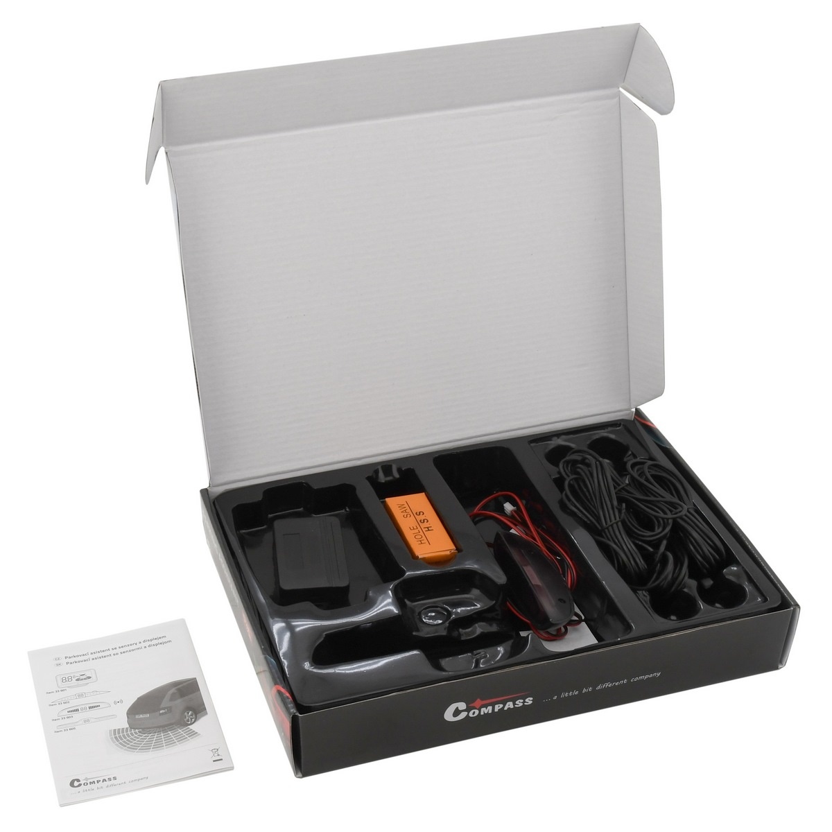Systém vodičovi pomáha bezpečne parkovať a zamedzuje nepredvídateľným kolíziám (napr. keď má vodič obmedzený výhľad alebo sa prekážka nachádza mimo jeho zorné pole). Displej tohto parkovacieho asistenta je opatrený iba kabelážou pre napájanie, prenos dát z riadiacej jednotky je riešený bezdrôtovo, čo významne uľahčuje inštaláciu displeja a komfort užívania zariadenia.Balenie obsahuje displej, riadiacu jednotku, 4 senzory pre montáž do zadného nárazníka, zodpovedajúcu kabeláž a vrták zodpovedajúceho priemeru.Technické parametre: