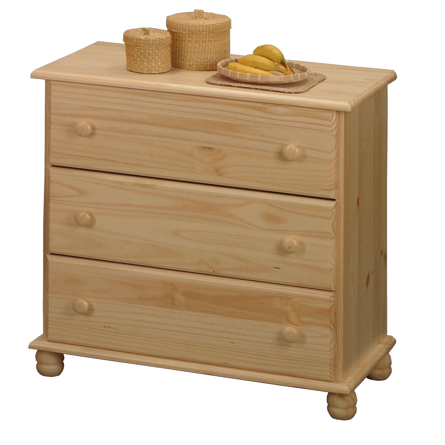 Pokiaľ máte preplnenú skriňu, uľavíte jej od bielizne a doplnkov, keď vedľa postavíte bielizník so zásuvkami. Bielizník 3 zásuvky 8013 v prevedení masív borovica lak obsahuje 3 široké zásuvky s kovovými pojazdmi s hĺbkou zásuvky 33,5 cm. Bielizník pojme všetko, čo by v skrini zaberalo miesto.