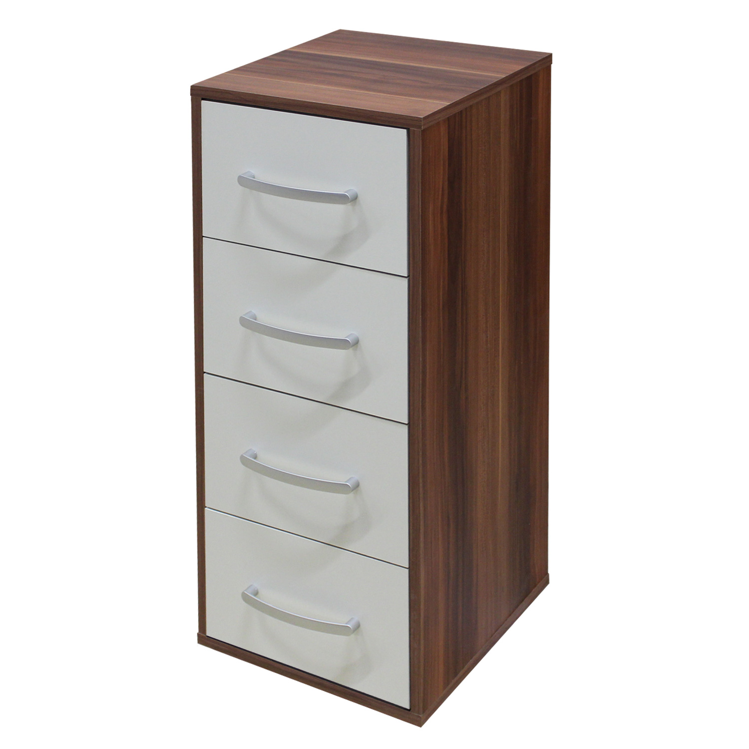 Bielizník 61506 vo farebnom prevedení orech / biela má 4 praktické zásuvky na uloženie najrôznejších drobností. Bielizník nemusí slúžiť iba na bielizeň, vedľa pracovného stola nahradí kontajner. Úzky bielizník využijete pri lôžku ako nočný stolík. Bielizník doplní nábytok v prevedení orech / biela.