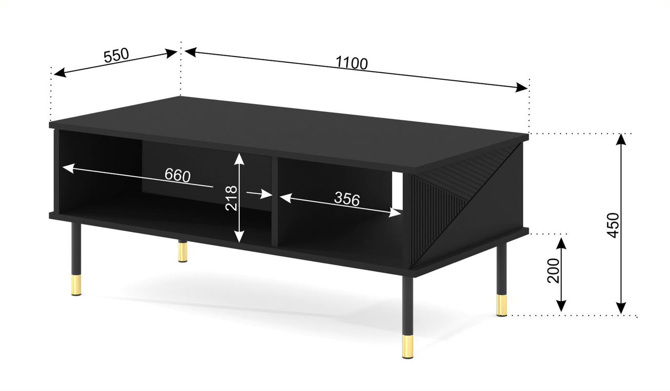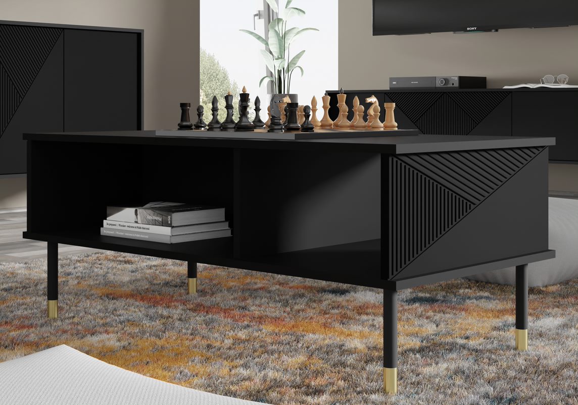 Konferenčný stolík z kolekcie WOODY je jedinečný kúsok, ktorý sa hodí do moderných interiérov a dodáva im eleganciu a funkčnosť. Jeho obdĺžniková vrchná doska poskytuje dostatok priestoru na umiestnenie dekorácií a nápojov alebo občerstvenia pri stretnutí s priateľmi alebo relaxácii s rodinou. Sofistikované detaily, ako napríklad vyfrézované predné plochy v geometrickom trojuholníkovom vzore, mu dodávajú jemný, ale osobitý charakter. Tieto prvky harmonizujú s minimalistickým dizajnom a zaručujú pevnosť a odolnosť nábytku. Ďalšou výhodou sú kovové nožičky, ktoré nielen dotvárajú jeho moderný vzhľad, ale zabezpečujú aj stabilitu a odolnosť. Praktickým riešením sú poličky umiestnené pod vrchnou doskou, ktoré ponúkajú ďalší úložný priestor, vďaka čomu je konferenčný stolík WOODY nielen estetickým, ale aj funkčným kusom nábytku na každodenné použitie.