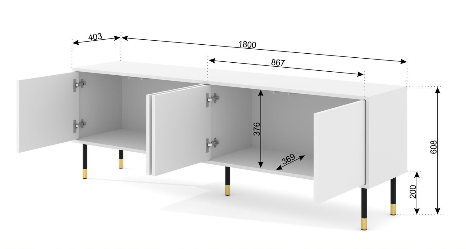 BIM TV stolík Wabi 180 cm, biely matný