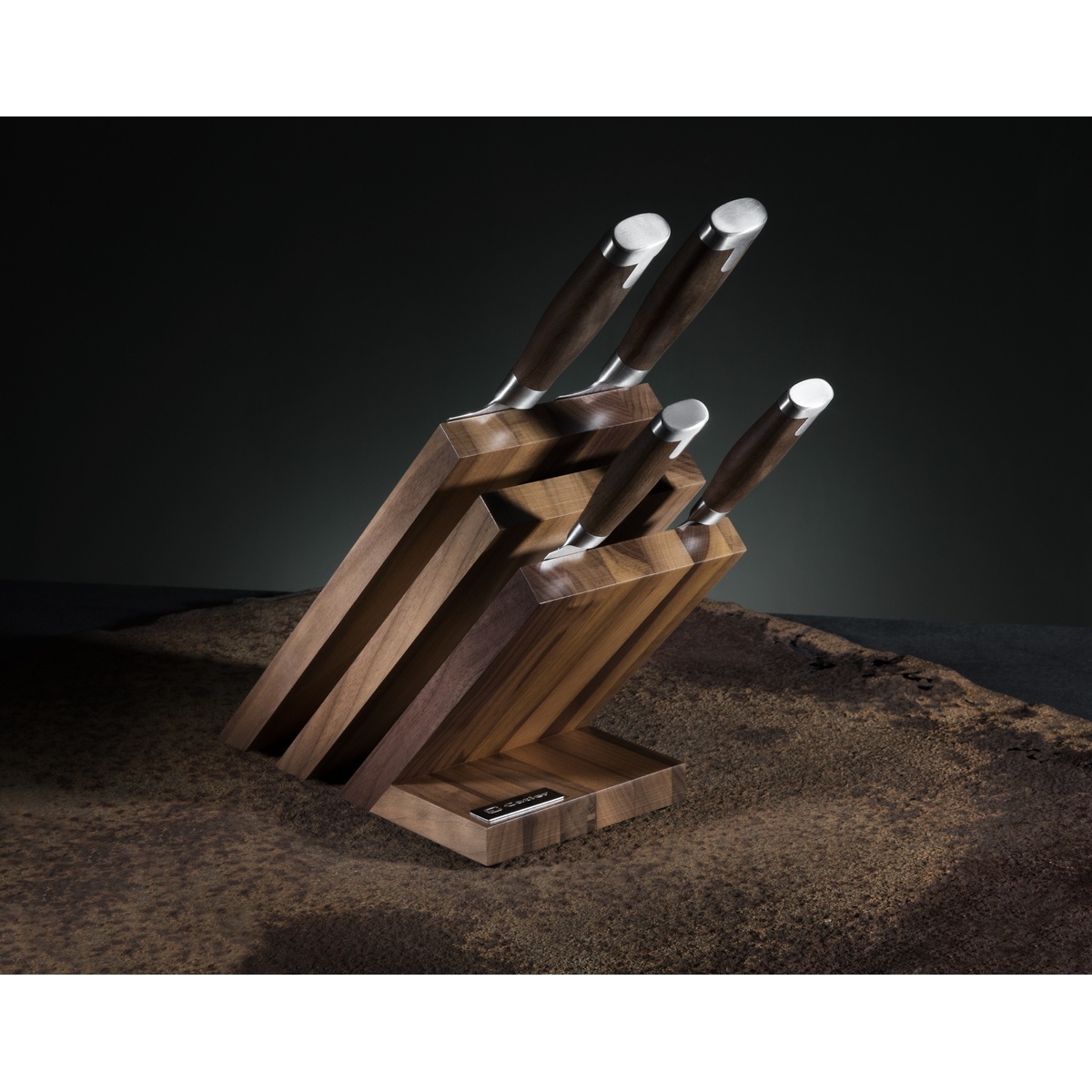 Magnetický stojan MKB 6 Vento je vyrobený z prvotriedneho orechového dreva z talianskych Dolomitov, ktoré mu prepožičiava tvrdosť, odolnosť a mimoriadny vzhľad.Silné magnety udržia až 6 nožov bez toho, aby sa dotýkali a tupili.Stojan ochráni vaše nože pred vlhkosťou a zničením, a zároveň skrášli vašu kuchyňu kúskom osobitého talianskeho dizajnu. Doprajte svojim nožom priestor a skladujte ich profesionálne tak, aby vám slúžili po celý život.