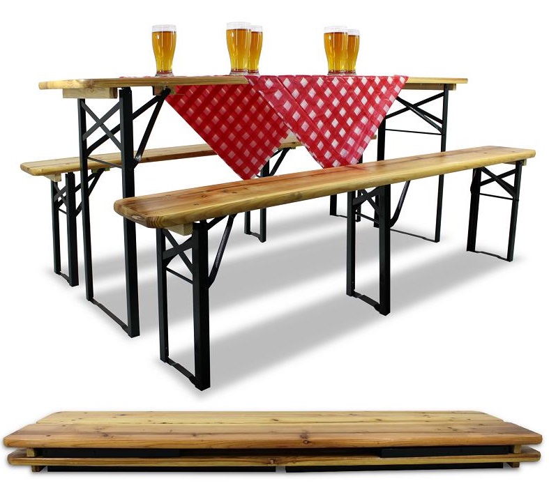 Pivný skladací set CAMP | 117 cm vo farebnom prevedení prírodná s kombináciou zelenej konštrukcie. Pivný set je ideálnym produktom na festivaly, dožinky a všetky podobné outdoorové akcie. Navyše, lavice a stôl sa dajú veľmi ľahko zložiť, čo uľahčuje ich skladovanie. Maximálne zaťaženie jednej lavice je 150 kg.