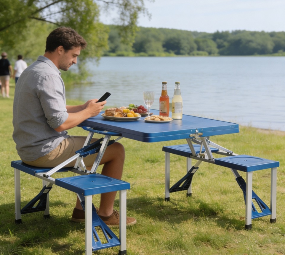 Turistický set OXE2712 v modro bielej farbe ponúka ideálnu kombináciu funkčnosti, stability a komfortu. Je vhodný nielen na rekreačné využitie, ale aj na trhy, festivaly či rôzne outdoorové podujatia. Jednoducho všetko, čo potrebujete pre pohodlné posedenie kdekoľvek. Praktický turistický set je vďaka jednoduchému skladaciemu mechanizmu pripravený na použitie za pár sekúnd bez potreby náradia. Po zložení má kompaktné rozmery, takže ho bez problémov prenesieš aj uskladníš.