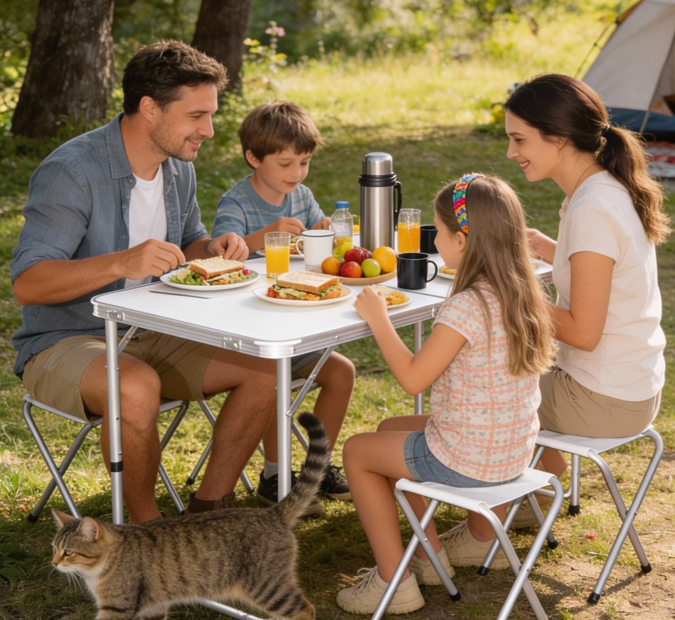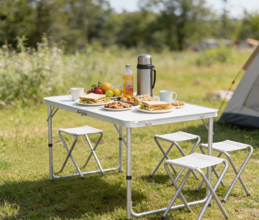 Turistický set OXE8211 s dĺžkou stola 120 cm ponúka ideálnu kombináciu funkčnosti, stability a komfortu. Je vhodný nielen na rekreačné využitie, ale aj na trhy, festivaly či rôzne outdoorové podujatia. Jednoducho všetko, čo potrebujete pre pohodlné posedenie kdekoľvek. Praktický turistický set obsahuje stabilný skladací stôl a štyri pohodlné stoličky, vďaka čomu máte vždy pripravené miesto na spoločné chvíle, či už na záhrade, pri kempovaní alebo na rodinnom pikniku.