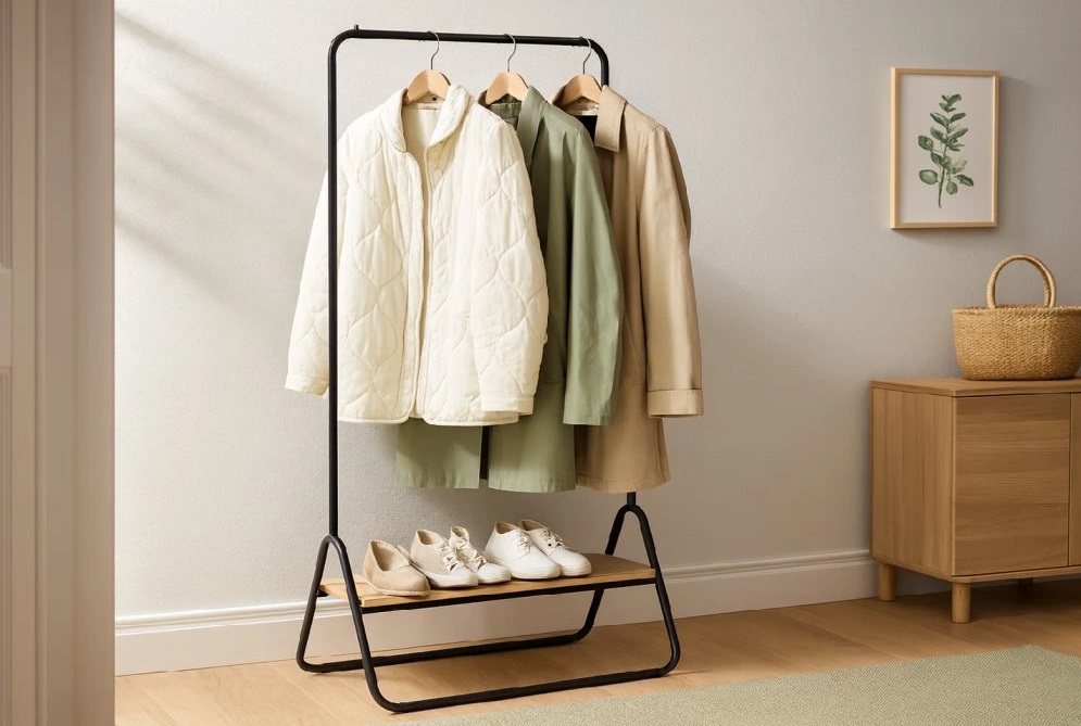 Vešiak je vyrobený z pevnej kovovej konštrukcie s práškovou povrchovou úpravou, ktorá zvyšuje odolnosť voči poškriabaniu, hrdzi a bežnému opotrebeniu. Vrchná polica je z kvalitnej MDF dosky s hrúbkou 12 mm, ktorá je pevná, stabilná a vhodná na každodenné používanie. Použité materiály zabezpečujú dlhú životnosť výrobku a zároveň zachovávajú jeho moderný vzhľad.