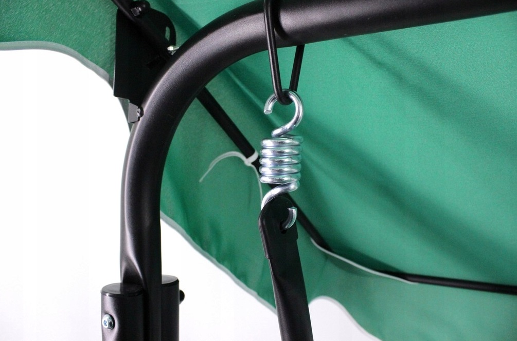 Záhradná hojdačka SWAY | tmavozelená je vyrobená z kvalitných materiálov. Kovová konštrukcia je pevná a odolná. Na konštrukcii je natiahnutá odolná látka, ktorá má na všetkých kovových koncoch prvkov vybavený plastovými krytkami. Zabráni sa tak porezaniu, vďaka čomu je bezpečný pre deti a starších ľudí. Zostava obsahuje všetky potrebné konektory, skrutky a pružiny. Odnímateľný vankúš pozostávajúci zo sedadla a operadla má háčiky, ktoré zabraňujú skĺznutiu. Ukončená volánom, určite dodá čaro každej záhrade. Vo vnútri balenia nájdete montážny návod spolu so všetkými vymeniteľnými prvkami súpravy.