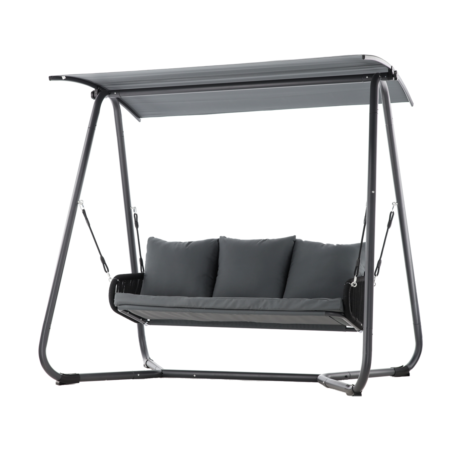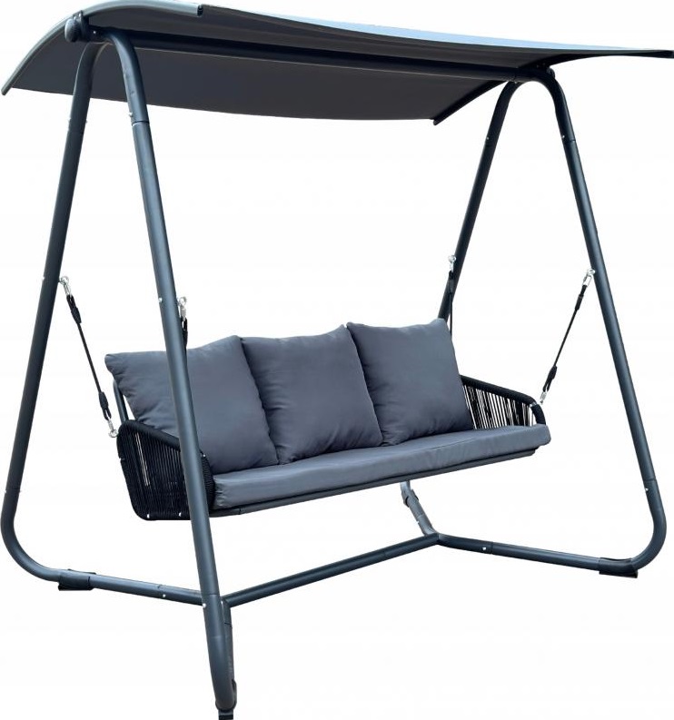 Záhradná hojdačka VARY | antracit je elegantná a pohodlná, skvele doplní dekoráciu vašej záhrady a umožní pohodlný relax na čerstvom vzduchu. Pri upratovaní sú výhodou odnímateľné vankúše. Záhradná hojdačka je pre tri osoby a má nastavenie striešky čo poskytuje príjemný tieň, a vďaka regulácii sklonu si môžete prispôsobiť jej polohu voči slnku, čím si zabezpečíte pohodlné miesto na relaxáciu.