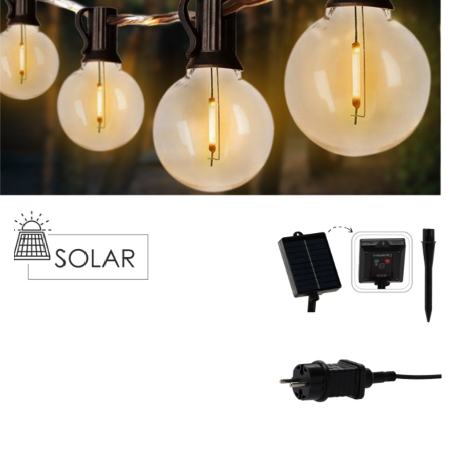 Záhradná solárna reťaz BUBBLE SOL1304 s LED žiarovkami v teplej bielej farbe je perfektným doplnkom na balkón, terasu alebo do záhrady. Vytvára príjemnú, útulnú a magickú atmosféru počas letných večerov. Moderný aj klasický dizajn žiaroviek umožňuje harmonické zlúčenie s rôznymi štýlmi interiérov a exteriérov. Reťaz je vyrobená pre vonkajšie aj vnútorné použitie, odoláva dažďu a vlhkosti.