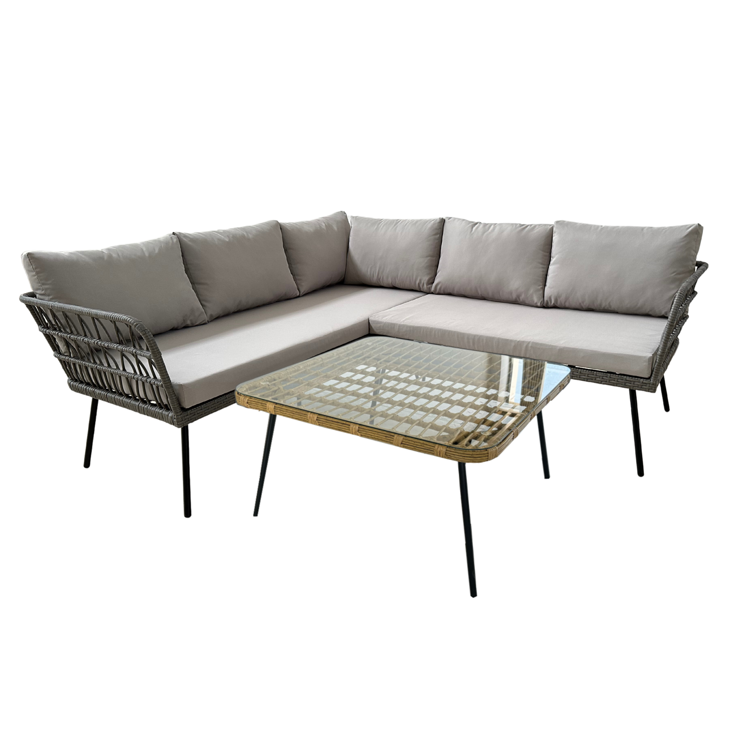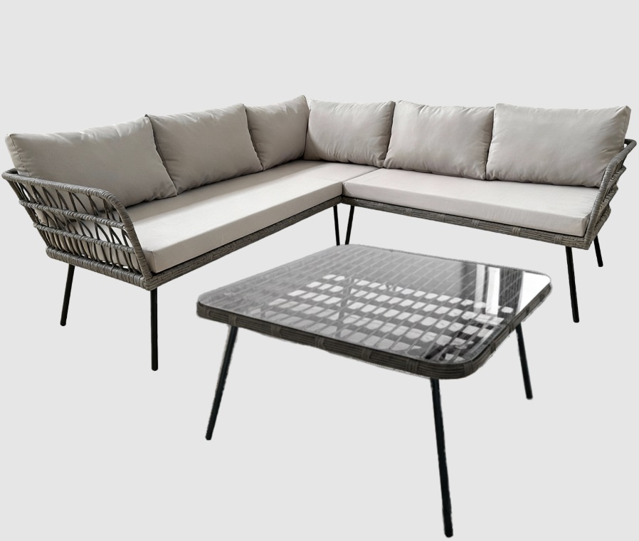 Štýlová a pohodlná zostava záhradná zostava FLOTES je ideálna do záhrady, na terasu, balkón alebo verandu. Súčasťou setu je rohová pohovka a praktický stolík so sklenenou doskou. Záhradný set má moderné sivé prevedenie, ratan je sivý a podušky sú tiež v sivej farbe, vďaka čomu sa jednoducho hodí do rôznych exteriérov aj interiérov. Táto elegantná rohová zostava je vhodná ako hlavná relaxačná zóna v záhrade, miesto na stretnutia na terase, pohodlné sedenie na väčšom balkóne alebo štýlový doplnok na verandu. Sklenený stolík je ideálny na odkladanie kávy, nápojov alebo občerstvenia. Pohodlné sedadlá s hrubými poduškami zabezpečujú komfort aj počas dlhého sedenia. Zostava je vhodná na čítanie knihy, prácu s notebookom na čerstvom vzduchu, stretnutia s rodinou a priateľmi alebo večerný relax.