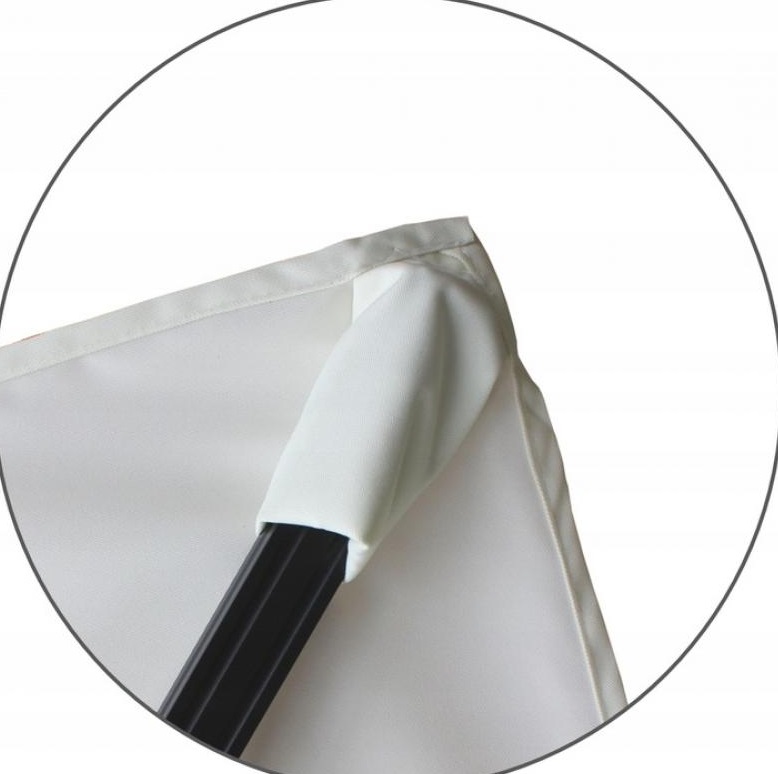 Stojaci profil je vyrobený z kvalitného hliníka s povrchovou úpravou práškovým lakovaním. Zavesený profil taktiež pozostáva z hliníka a je ošetrený rovnakou práškovou farbou, ktorá zaručuje odolnosť a estetický vzhľad. Stabilitu zabezpečuje podstavec s krížovou základňou z robustnej ocele, ktorá poskytuje spoľahlivú oporu. Strieška je z vodeodolného materiálu poskytuje spoľahlivú ochranu pred nepriazňou počasia. Jednoduché skladanie a rozkladanie umožňuje praktická kľuka.