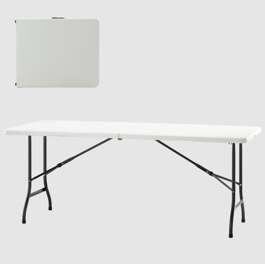 Záhradný stôl SLEEK | biela 180 cm je profesionálny cateringový záhradný stôl. Má veľmi praktický dizajn a je ľahký vzhľadom na jeho rozmery (11,5 kg). Záhradný stôl je ideálny pre rodinné záhradné párty, svadby pod holým nebom, kempovanie alebo použitie v predajných stánkoch.