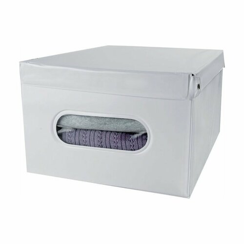 Úložná krabica z umývateľného PVC s vekom, ktoré neprepustí prach, vlhkosť ani roztoče. Elegantné riešenie pre skladovanie oblečenia a ďalších doplnkov. Úložné boxy a škatule Compactor Smart sú štýlové a zároveň praktické. Krabica je dosť veľká, aby ste do nej uložili napr. niekoľko svetrov alebo sezónnych doplnkov, ako sú čiapky a šály. Môžete ju však používať na skladovanie takmer čohokoľvek od kozmetiky po najrôznejšie toaletné potreby. Biela farba sa ľahko zladí s každým interiérom a predné priehľadné okienko vám pomôže rýchlo zistiť, čo sa v krabici ukrýva. Odolnosť krabice zaistí použitý materiál – zosilnená lepenka potiahnutá PVC.