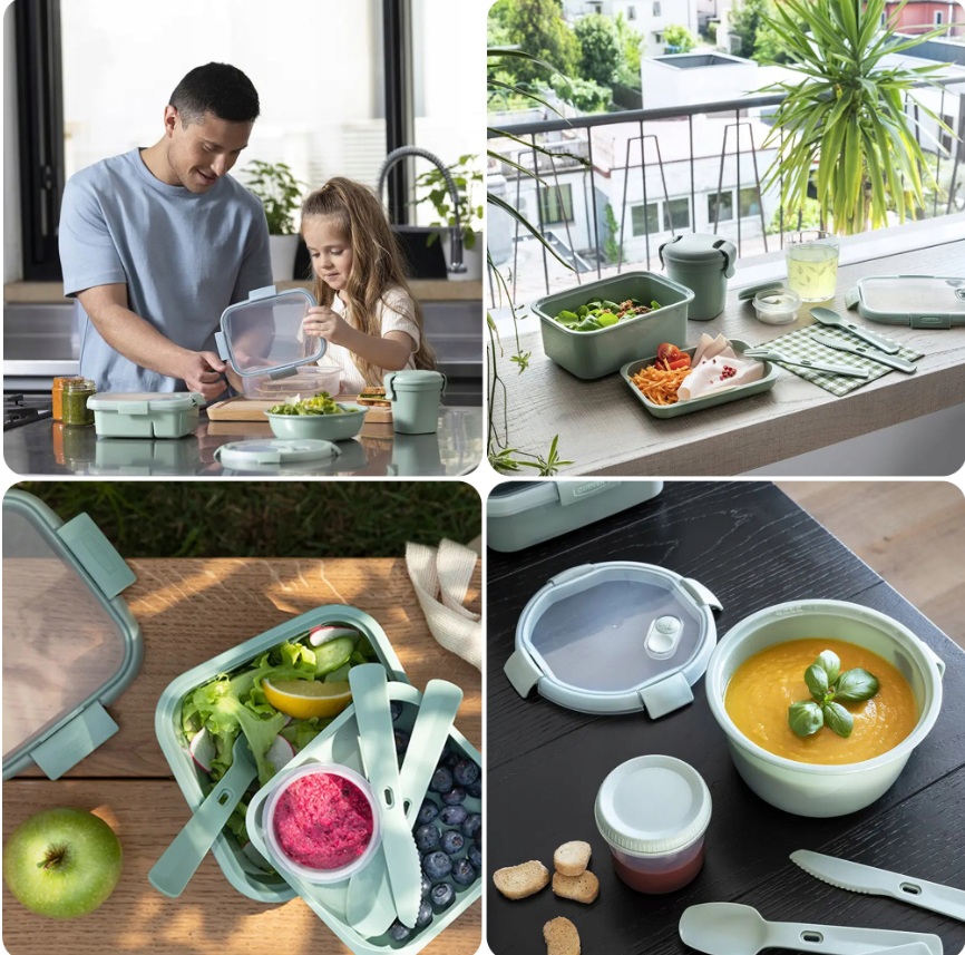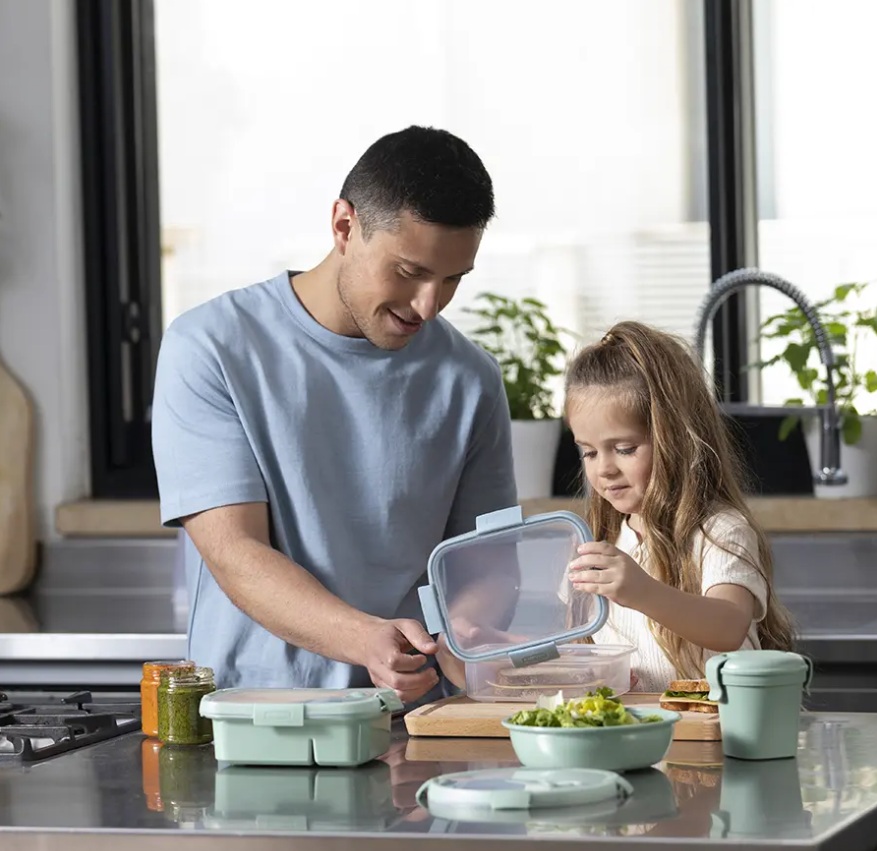 Dózy z radu SMART TO GO ECO disponujú vstavaným tesnením, sú 100% vzduchotesné a vodotesné. Klipsy zaručujú bezpečné uzatvorenie. Priehľadné veko umožňuje prezeranie obsahu. Dózu je možné bezpečne používať v mikrovlnnej rúre, teplé jedlo pripravíte za pár chvíľ a bez zašpinenia tanierov. Neobsahujú bisfenol A, bezpečne ju môžete umývať v umývačke riadu. Chcete skladovať potraviny v chladničke? Žiadny problém! Táto a ďalšie nádoby zo série SMART TO GO ECO sú vhodné na skladovanie pri nižších teplotách. Navyše sú navrhnuté tak, aby ste ich mohli stohovať na seba, čím ušetríte miesto na poličkách!