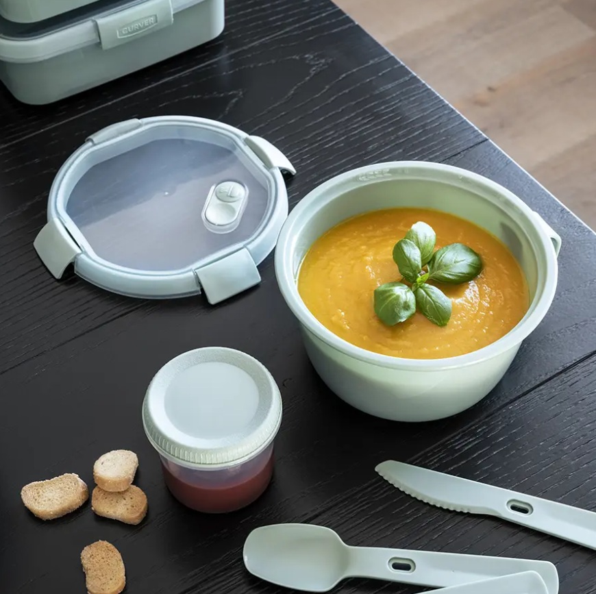 CURVER Dóza na potraviny s príborom SMART TO GO ECO 0,9L | svetlo zelená