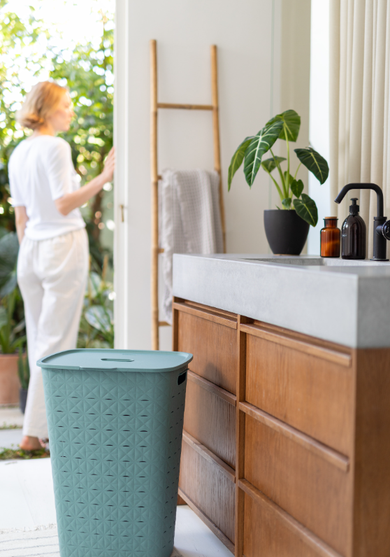 Praktický kôš na špinavú bielizeň s objemom SOFTEX 56 l / modrá, je inšpirovaný technikou tkania a prešívania, ktorá vytvára vzor, ktorý vyzerá ako vypchávka. Kôš dodá každej kúpeľni luxusný a zároveň priateľský nádych. Tento kôš sa nielen pohodlne nosí, ale je tiež kvalitný a praktický, pretože je vyrobený zo 70% z recyklovaných materiálov. Celkový objem koša je 56L.