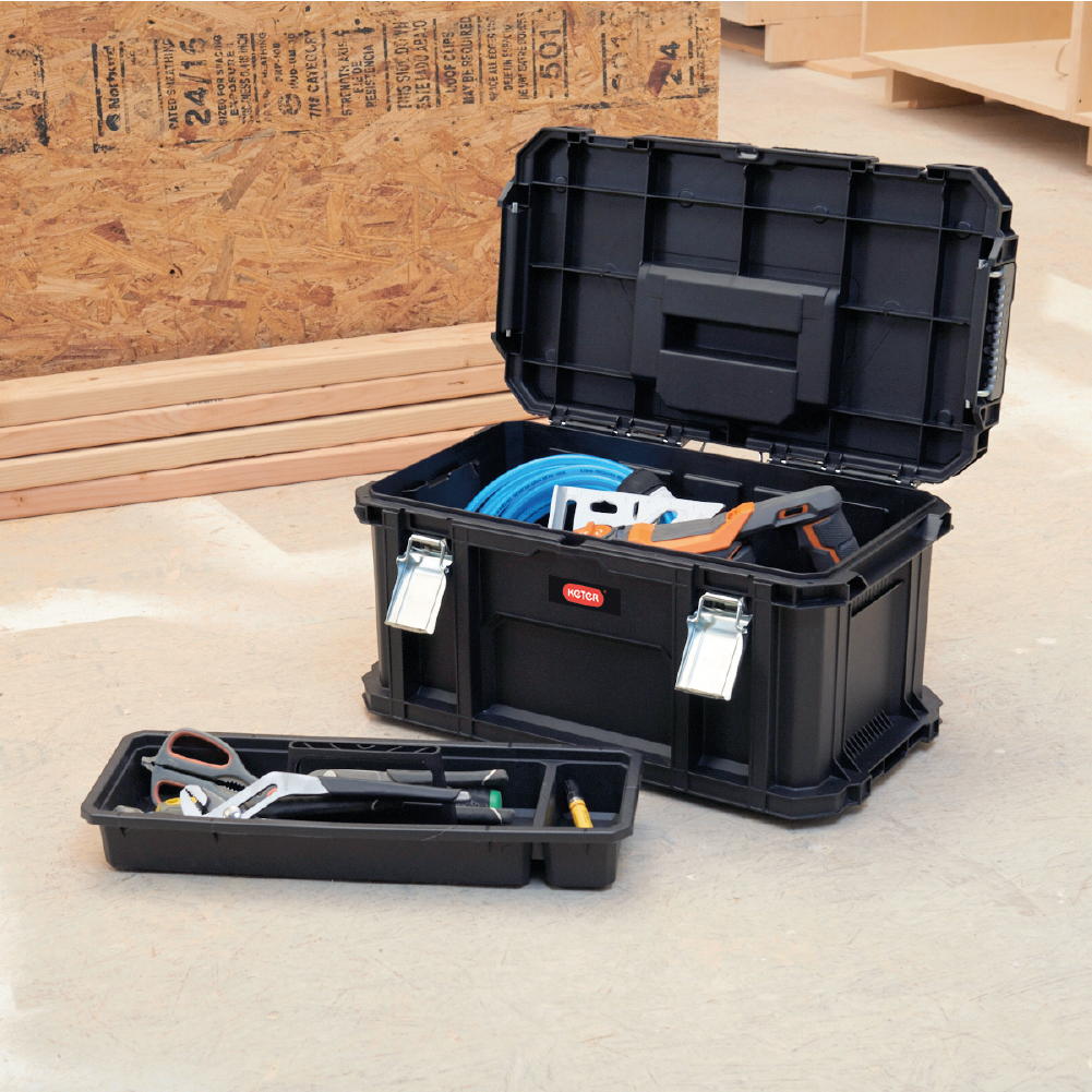 Kufor na náradie Connect je pre každého, kto hľadá spoľahlivý a priestranný box na náradie. Každý úspešný kutil vie, že tajomstvo efektívnej práce spočíva v dobre usporiadanom a ľahko prístupnom náradí – a presne to tento kufor ponúka. Uložte elektrické náradie a väčšie ručné náradie do priestrannej hlavnej priehradky, zatiaľ čo menšie nástroje prehľadne usporiadate vo vyberateľnej priehradke na náradie. Kovové klipy zaručujú pevné uzavretie, vďaka čomu zostane obsah v bezpečí aj počas prenášania. Praktická rukoväť umožňuje pohodlné prenášanie bez námahy. Vďaka svojej kompatibilite s ďalšími produktmi Connect môžete vytvoriť praktický systém na mieru. Kombinácia úložného priestoru a zásobníka zabezpečuje priestorovú efektívnosť a funkčnosť v jednom kompaktnom riešení – ideálne do dielne, na stavbu aj do auta.