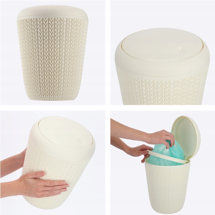 Elegantný kúpeľňový kôš KNIT 7l má exkluzívny vzor, ktorý je inšpirovaný trendom pletených textílií a zaisťuje jedinečný vzhľad. Štýlový kúpeľňový kôš, vďaka ktorému si vždy udržíte vytúžený poriadok. Vďaka unikátnemu dizajnu a neutrálnemu farebnému prevedeniu sa bude hodiť do každého interiéru. Pre Vaše pohodlie má kôš vyklápacie veko.