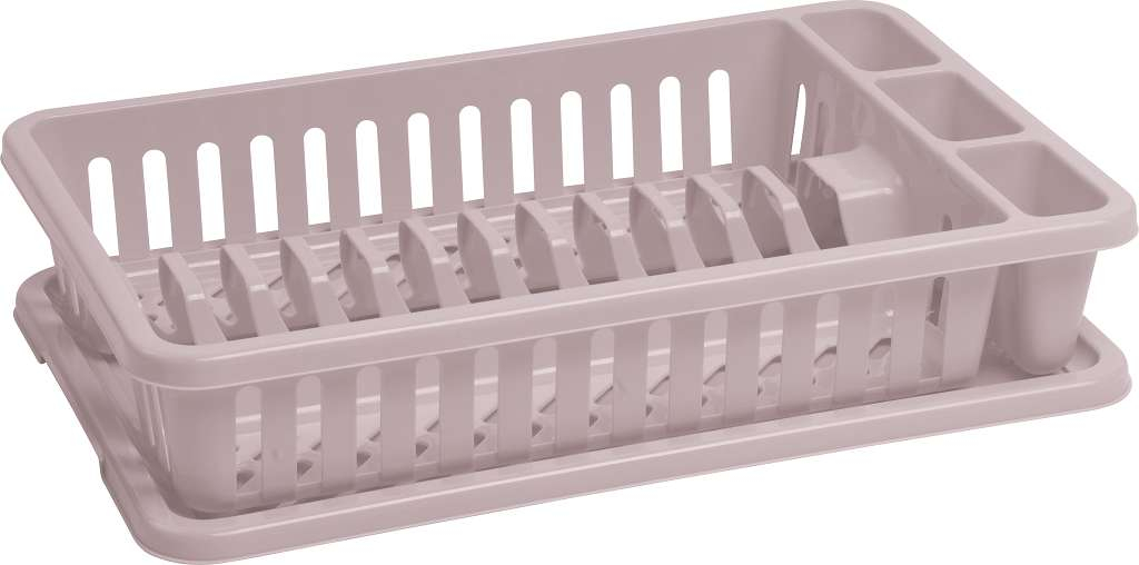 Odkvapkávač na riad je vyrobený z kvalitného plastu, ktorý sa používa najmä vďaka svojej ľahkosti, odolnosti, tvarovateľnosti a nízkej cene. Materiál je ľahko umývateľný a odolný voči poškodeniu, je obľúbený kvôli nízkej hmotnosti.