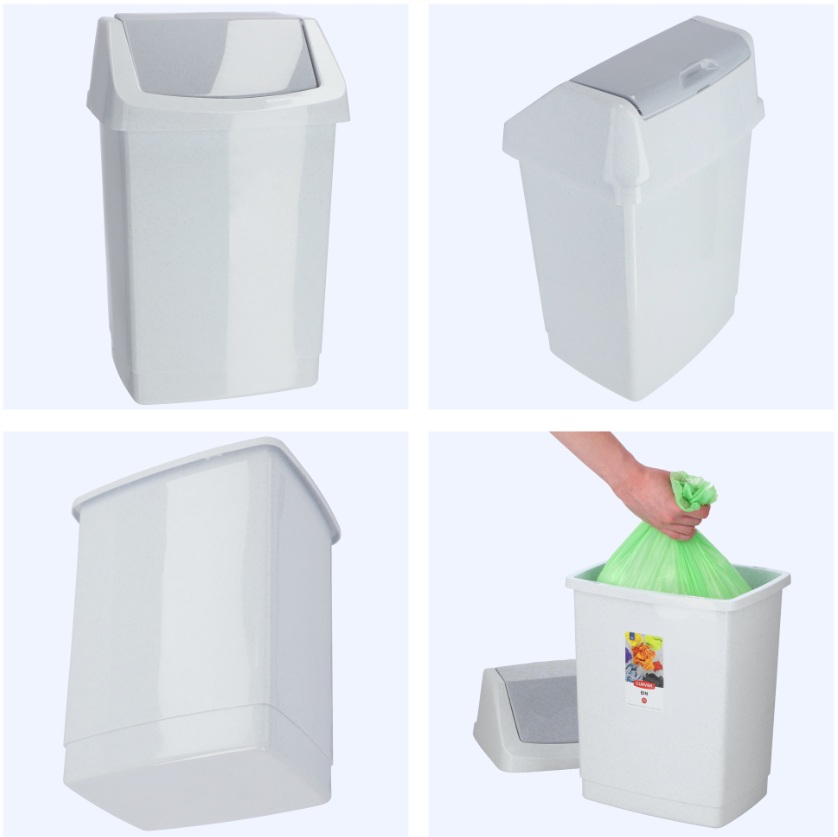 Odpadkový kôš je vyrobený z kvalitného plastu, ktorý sa používa najmä vďaka svojej ľahkosti, odolnosti, tvarovateľnosti a nízkej cene. Materiál je ľahko umývateľný a odolný voči poškodeniu, je obľúbený kvôli nízkej hmotnosti.