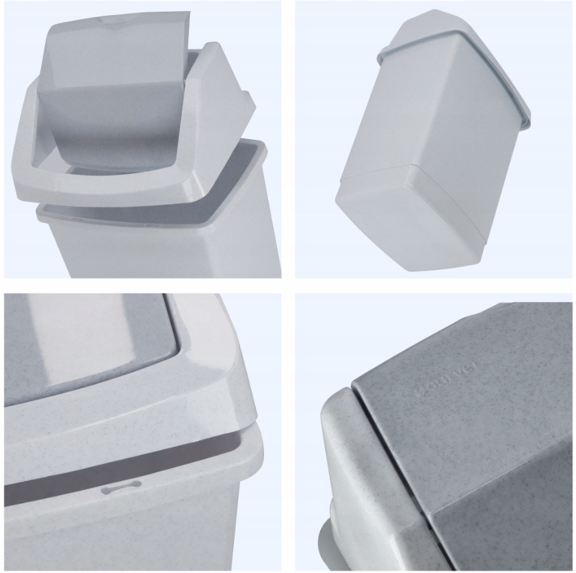 Odpadkový kôš je vyrobený z kvalitného plastu, ktorý sa používa najmä vďaka svojej ľahkosti, odolnosti, tvarovateľnosti a nízkej cene. Materiál je ľahko umývateľný a odolný voči poškodeniu, je obľúbený kvôli nízkej hmotnosti.