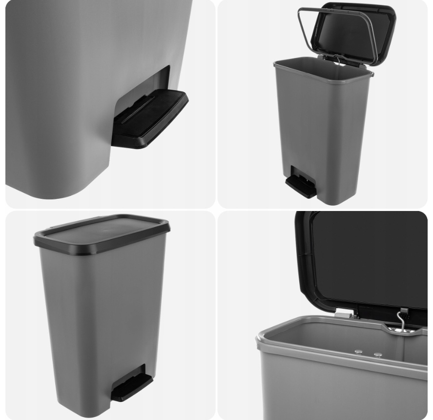 Odpadkový kôš je vyrobený z kvalitného plastu, ktorý sa používa najmä vďaka svojej ľahkosti, odolnosti, tvarovateľnosti a nízkej cene. Materiál je ľahko umývateľný a odolný voči poškodeniu, je obľúbený kvôli nízkej hmotnosti. Produkt bol vyrobený s ohľadom na prírodné prostredie, zo 70% z recyklovaných materiálov , takže bude skvelou voľbou pre ľudí, ktorí si cenia ekologické riešenia vo svojom dome.