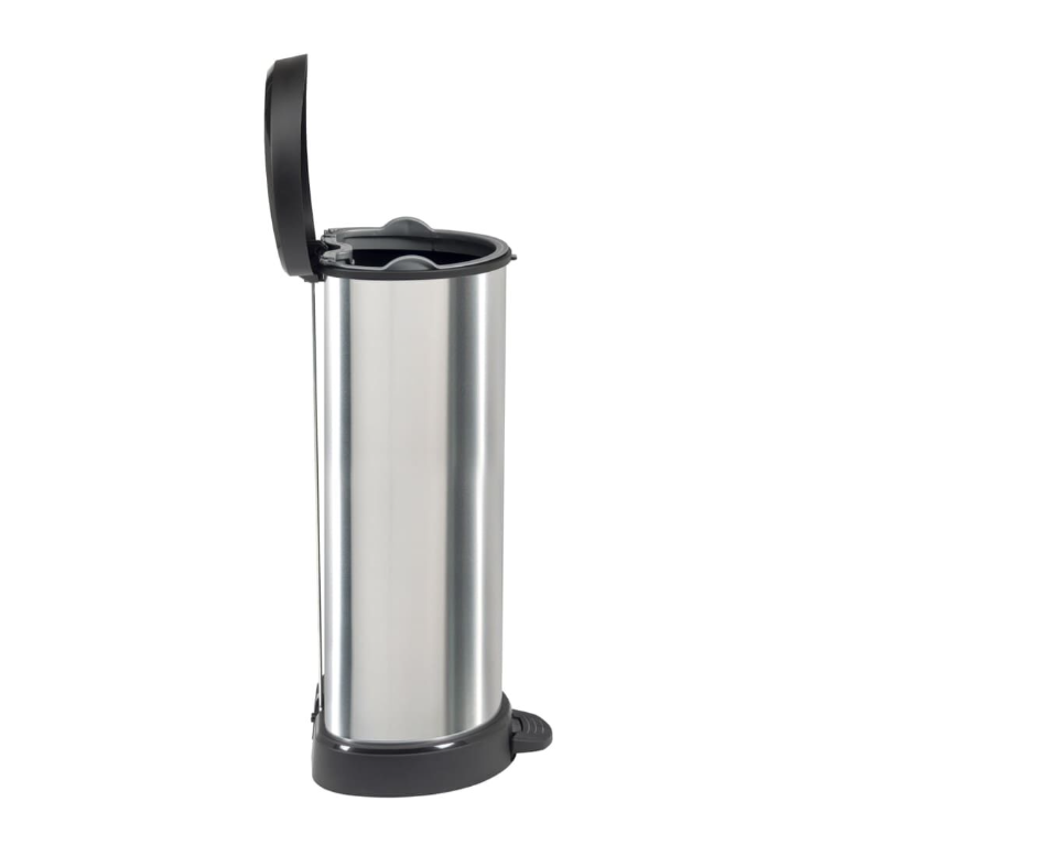 Praktický odpadkový kôš Deco bin 40l zaujme moderným vzhľadom s elegantnou metalickou fóliou, ktorá pripomína vzhľad kovu, no zachováva praktické výhody plastu. Vďaka skrytému pedálovému mechanizmu pôsobí čisto a esteticky, pričom otváranie je pohodlné a hygienické. Kôš je ideálny do kuchyne, kúpeľne aj kancelárie. Nezanecháva odtlačky prstov, ľahko sa čistí a vyniká vysokou tvarovou stálosťou a odolnosťou voči nárazom. Objem 40 litrov poskytuje dostatok miesta aj pre väčšie domácnosti.