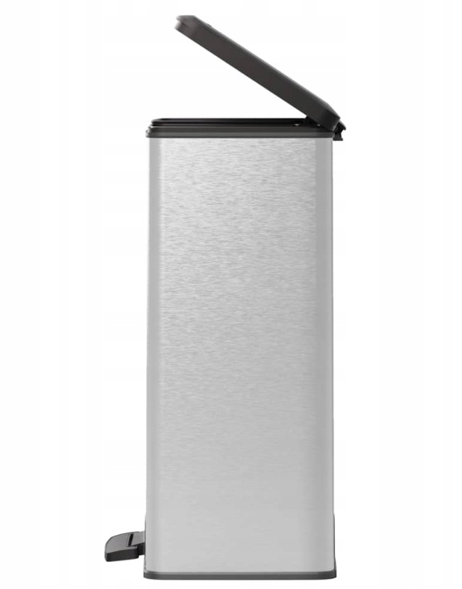 Plastový odpadkový kôš DECO BIN 65l v striebornej farbe v kombinácií s čiernou bude skvelým a praktickým doplnkom vašej domácnosti. Pohodlné otváranie pomocou pedálu (pedálový mechanizmus je skrytý a nenarušuje vzhľad odpadkového koša). Odpadkový kôš je vhodný do kuchyne, kúpeľne či kancelárie. Na povrchu nezostávajú odtlačky prstov a ľahko sa čistí. Objem 65L.