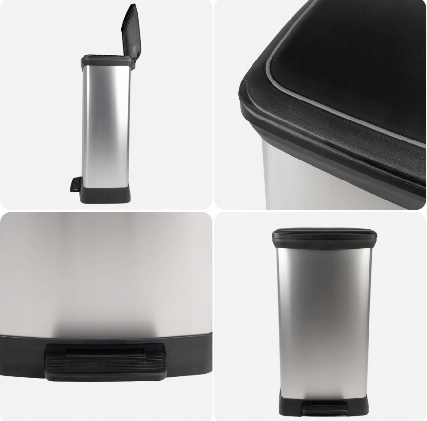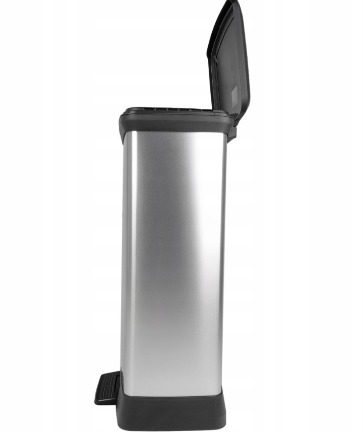 Plastový odpadkový kôš DECO BIN 23l+23l v striebornej farbe v kombinácií s čiernou bude skvelým a praktickým doplnkom vašej domácnosti. Pohodlné otváranie pomocou pedálu (pedálový mechanizmus je skrytý a nenarušuje vzhľad odpadkového koša). Odpadkový kôš je vhodný do kuchyne, kúpeľne či kancelárie. Na povrchu nezostávajú odtlačky prstov a ľahko sa čistí. Kôš na triedenie odpadu DECO BIN je riešenie kombinujúce praktickosť so starostlivosťou o životné prostredie. Dve oddelené komory vo vnútri koša pomôžu členom domácnosti ľahko triediť odpad. Veľkosť komôr 23L a 23L.