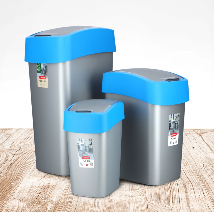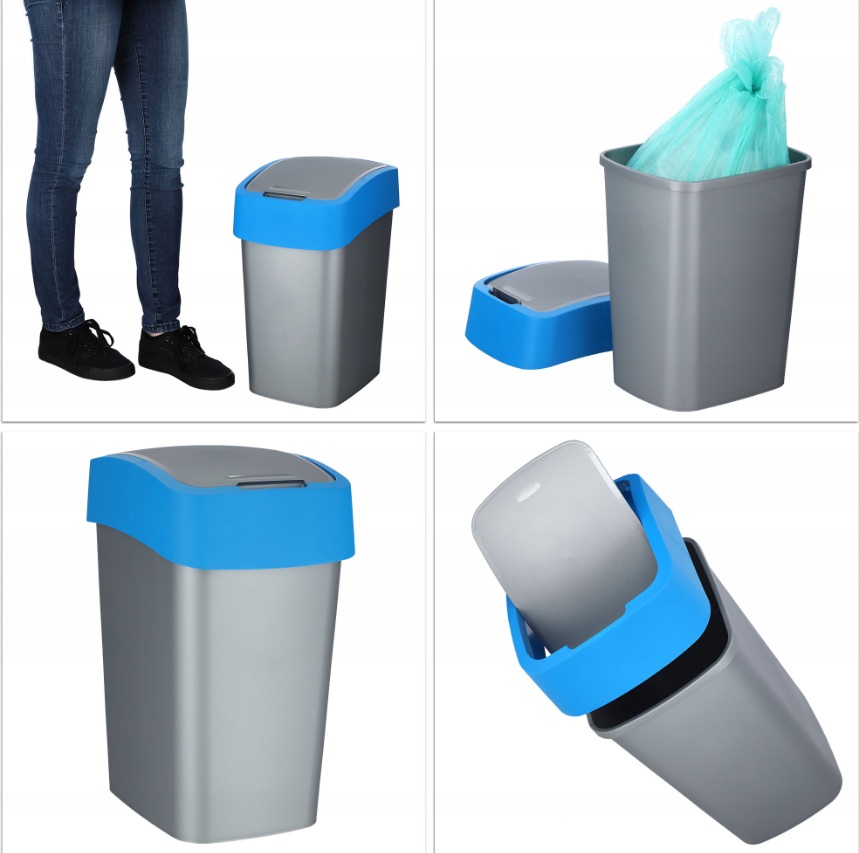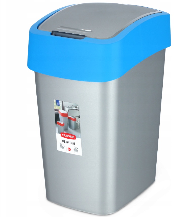 Špecifikácia pre produkt: CURVER Odpadkový kôš FLIP BIN 45l | strieborná / modrá