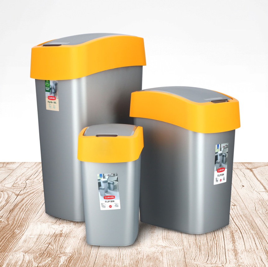 Špecifikácia pre produkt: CURVER Odpadkový kôš FLIP BIN 45l | strieborná / žltá