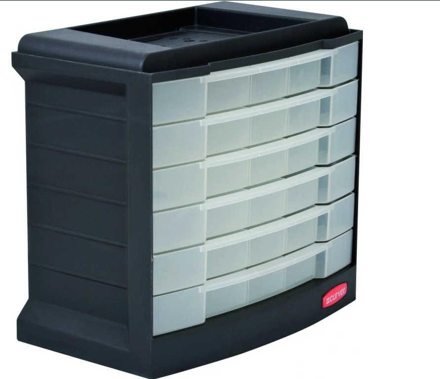 Praktický a priestranný organizér s 6 zásuvkami, z ktorých každá je členená na menšie priehradky, je ideálnym riešením pre prehľadné uskladnenie drobných predmetov. Či už ho využijete v dielni, v kancelárii alebo v domácnosti, tento organizér vám pomôže udržať poriadok a všetko dôležité vždy po ruke. Kompaktné rozmery, funkčné členenie a univerzálne využitie robia z tohto pomocníka neoceniteľný doplnok do každého priestoru.