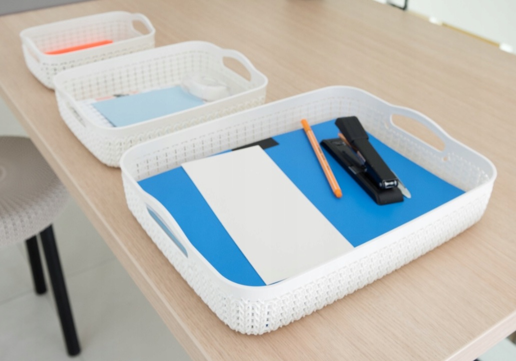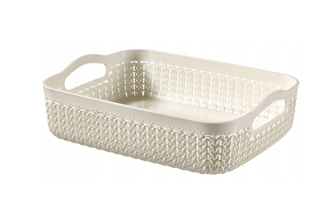 Podnos KNIT A5 má exkluzívny vzor, ktorý je inšpirovaný trendom pletených textílií a zaisťuje jedinečný vzhľad. Vzor pletenia tiež zabezpečuje dobré vetranie. Vďaka unikátnemu dizajnu a neutrálnemu farebnému prevedeniu sa bude hodiť takmer do všetkých izieb vo Vašom dome. Osvedčí sa hlavne v kuchyni a jedálni, ale môže sa zísť aj pri upratovaní detských hračiek alebo drobností v kancelárii. Pre Vaše pohodlie má podnos z každej strany pohodlnú rukoväť na uchopenie.