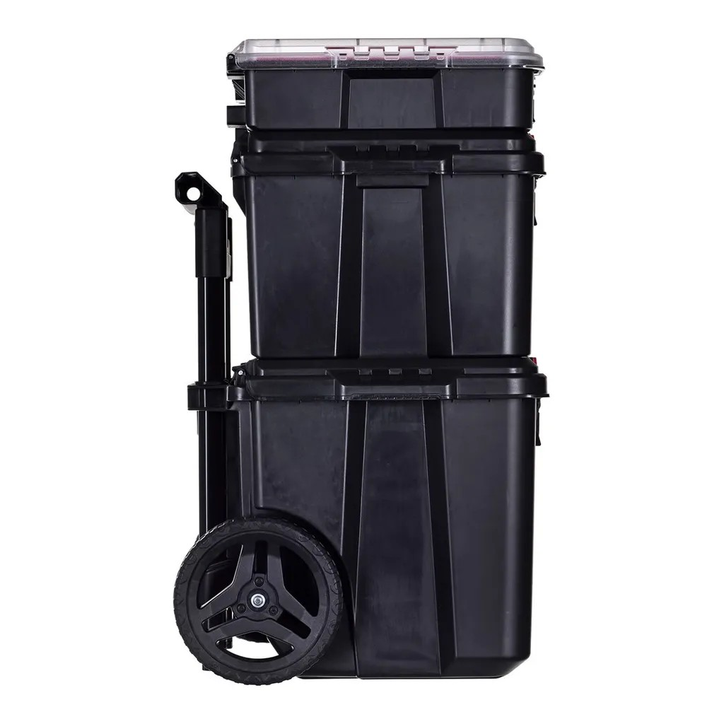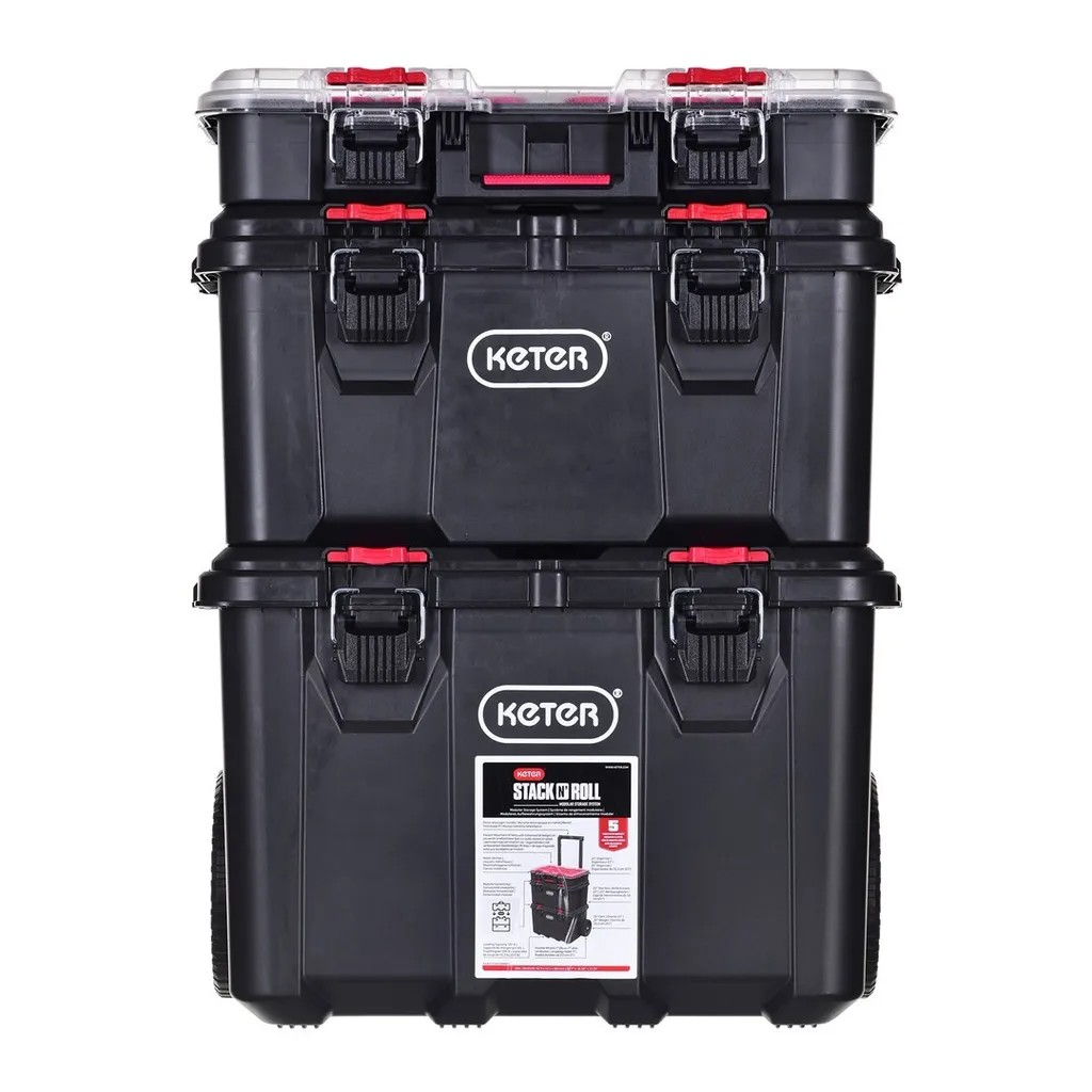Stack’N’Roll je koncept, ktorý kombinuje stacionárne riešenie „doma“ a mobilné riešenie „na cestách“. Poskytuje vynikajúcu, ľahko vytvorenú organizáciu pre garáž / technickú miestnosť a ľahkú mobilitu, keď potrebujete pracovať vonku. Sada ponúka kovovú teleskopickú rukoväť, modulárnu systémovú konektivitu, vysoko odolné západky, 7” kolesá, zásobník v boxe na náradie, ktorý sa hodí aj do vozíka, polykarbonátové priehľadné veko a odnímateľné priehradky niekoľkých veľkostí. Max nosnosť sady je 45kg.
