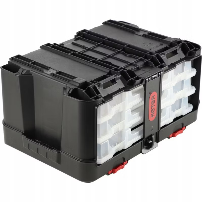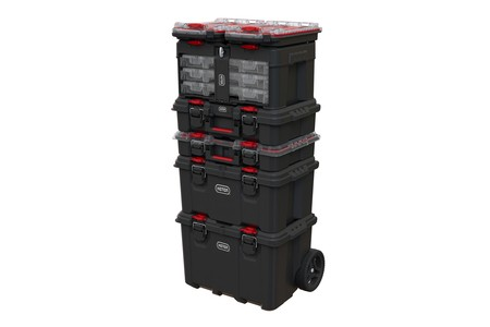 Stack’N’Roll je koncept, ktorý kombinuje stacionárne riešenie „doma“ a mobilné riešenie „na cestách“. Poskytuje vynikajúcu, ľahko vytvorenú organizáciu pre garáž / technickú miestnosť a ľahkú mobilitu, keď potrebujete pracovať vonku. Organizér ponúka transparentné organizéry pre viditeľnosť obsahu, odnímateľné prepážky umožňujúce prispôsobenie priestoru pre rôzne veľkosti predmetov, polykarbonátový uzamykací pásik udržuje organizéry v bezpečí v úložnom ráme a pevný plastový uzáver drží organizéry bezpečne na svojom mieste, sklopnú a ergonomickú rukoväť na jednoduché prenášanie, bočné úchyty pre možnosť sekundárneho zdvíhania.